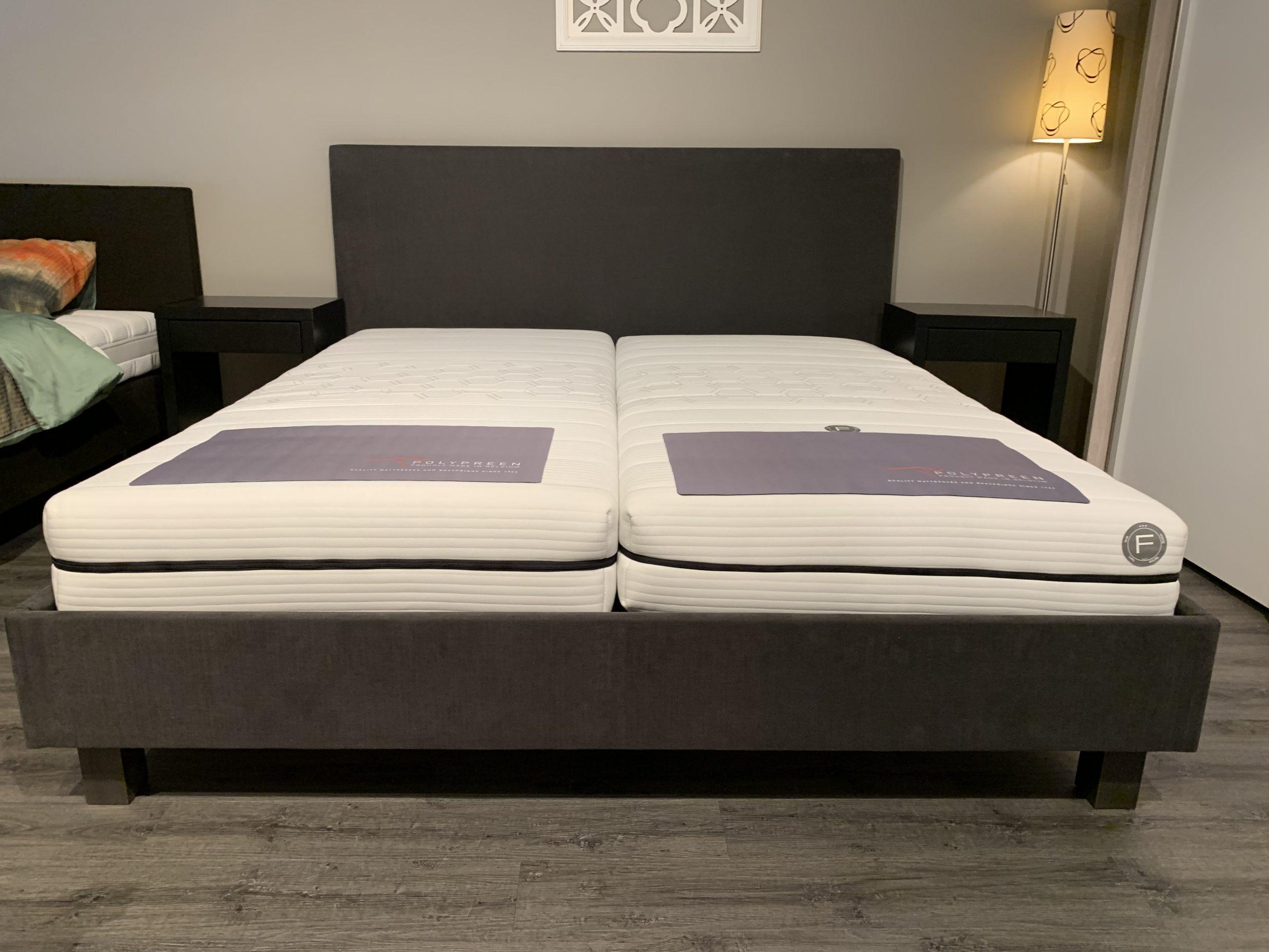 Prachtig gestoffeerd ledikant van Beka op de maat 180×210 in een antracite stof.