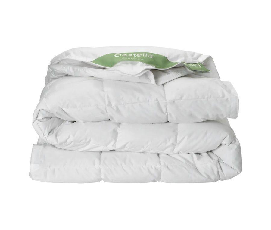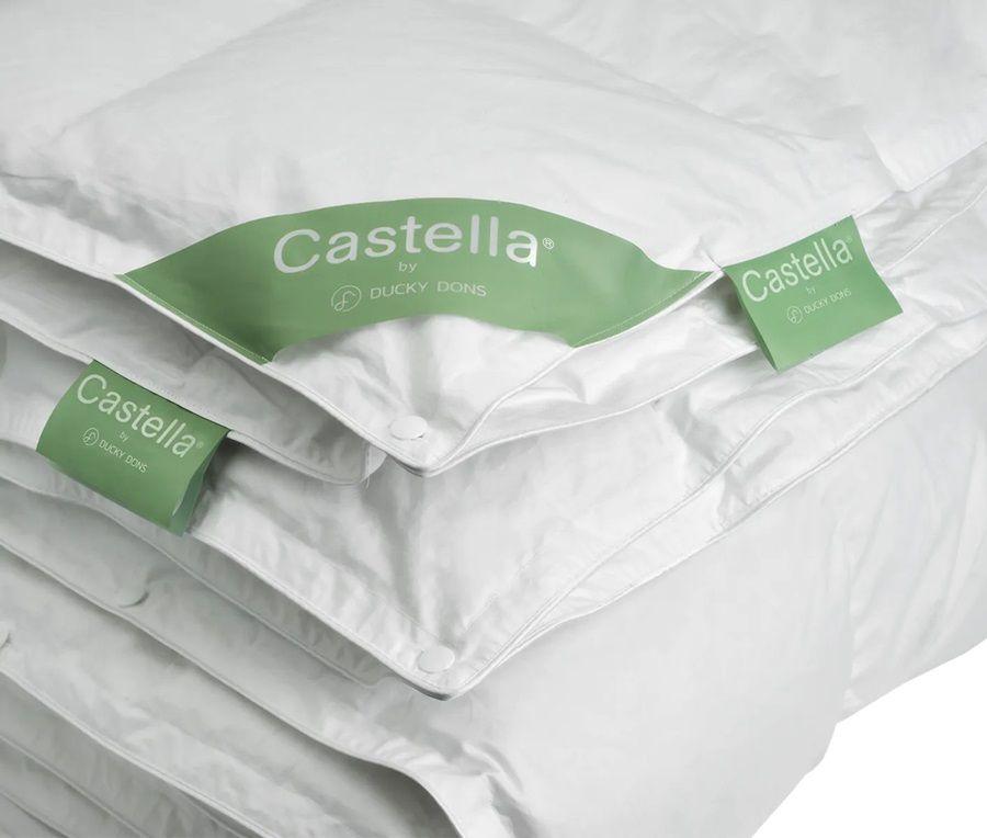 Het hele jaar comfortabel slapen Een comfortabel en zacht dekbed gevuld met 90% eendendons en 10% veertjes in een fijne en soepele tijk. De Castella