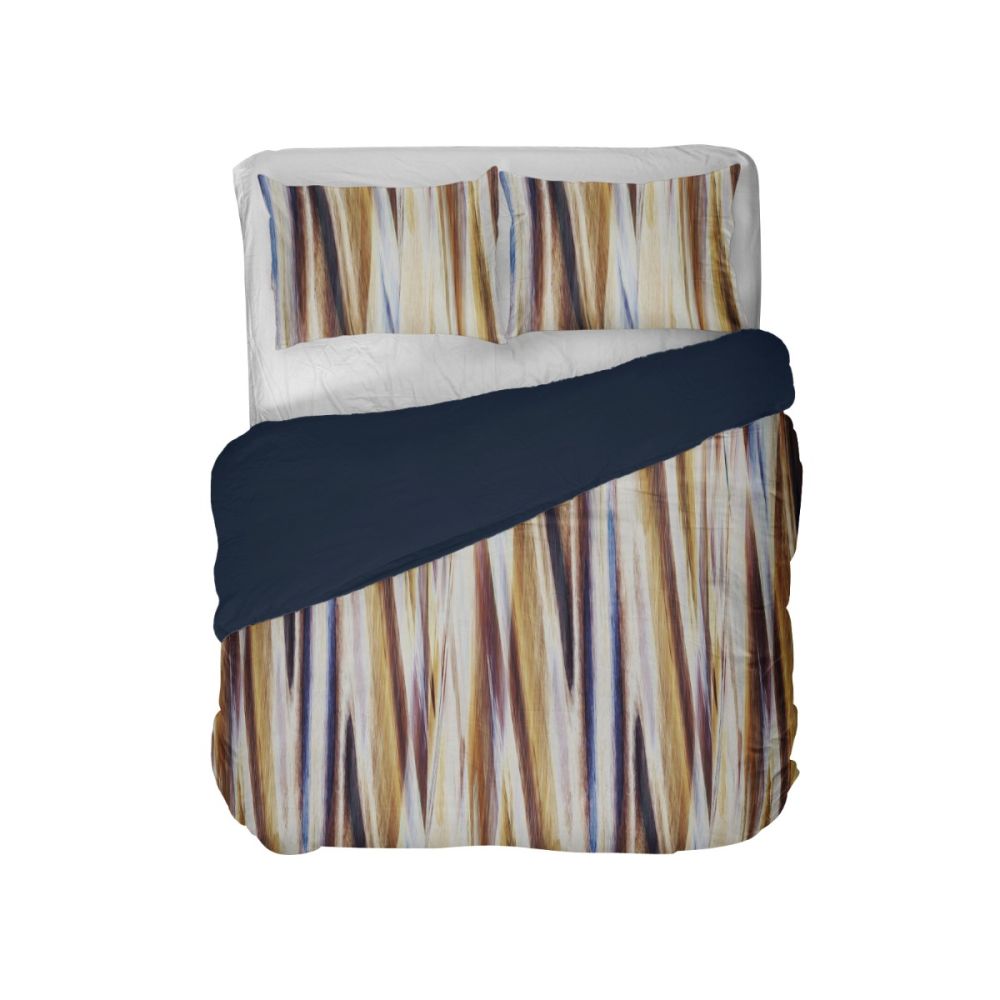 Tijdloos en trendy, dat is het Kayori Atami dekbedovertrek. De strepenprint bestaat uit blauw- en bruintinten die prachtig uitkomen op de lichte ondergrond. daarnaast zijn de strpeen van verschillende lengtes, zodat er een speels en artistiek geheel ontstaat.