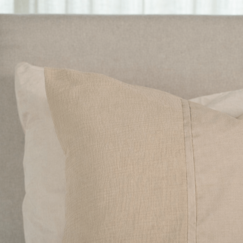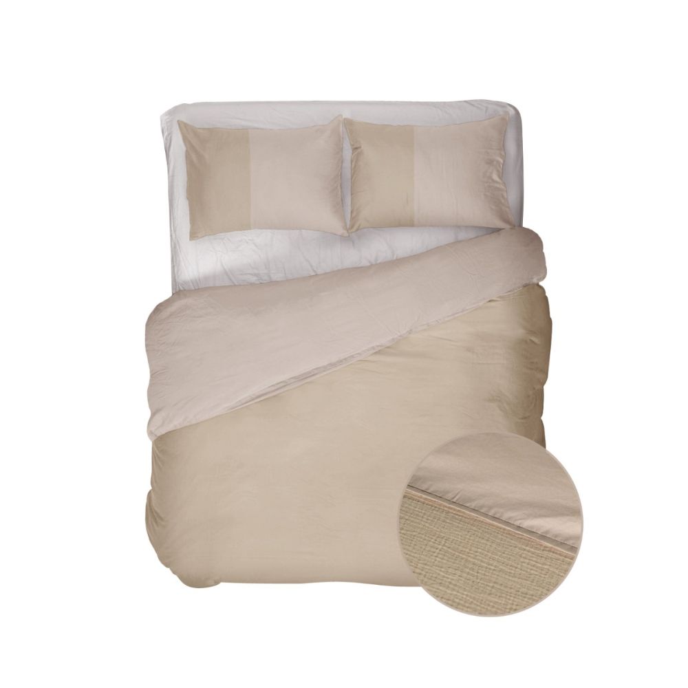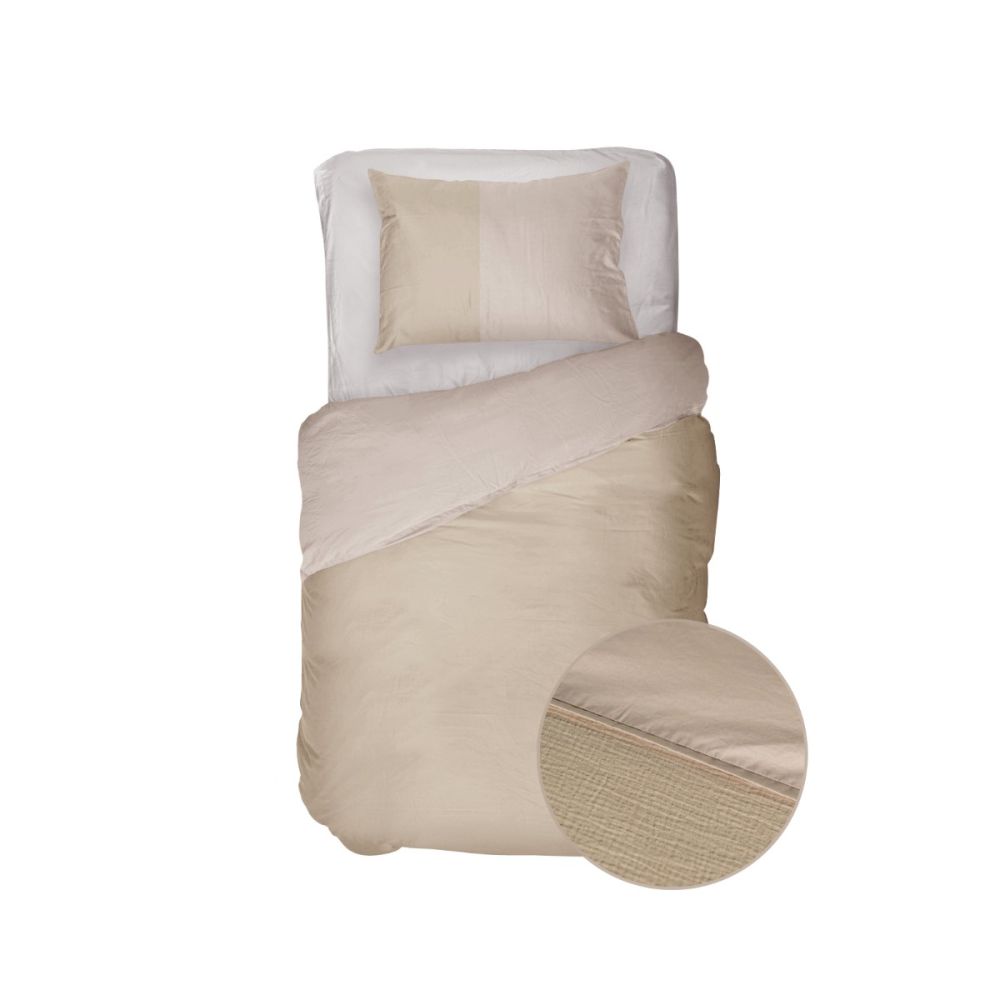 Creëer een oase aan rust in jouw slaapkamer met het zandkleurige Kayori Gosen dekbedovertrek. De voorkant is opgedeeld in twee stukken, waarbij het onderste gedeelte van de mousseline weeftechniek is voorzien. Een superzachte basic met een speelse twist.