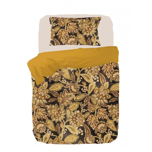 Het dessin ‘Isao’ is een herkenbaar dessin in een nieuw jasje. Bekende elementen uit mandala’s en paisley’s zijn uitgewerkt in prachtige goud-tinten op een diep donker bruine achtergrond. De achterzijde van het overtrek is uni effen goud. De stof van dit dekbedovertrek is de krachtige maar soepele pima-katoen. Een katoen soort die bijzonder sterk, slijtvast en zacht aanvoelt. Hierdoor blijft het overtrek heel lang mooi en voelt het heerlijk aan. Het dekbedovertrek is verpakt in een zak van de eigen stof: zo krijg je meteen een voorproefje van het dekbedovertrek!