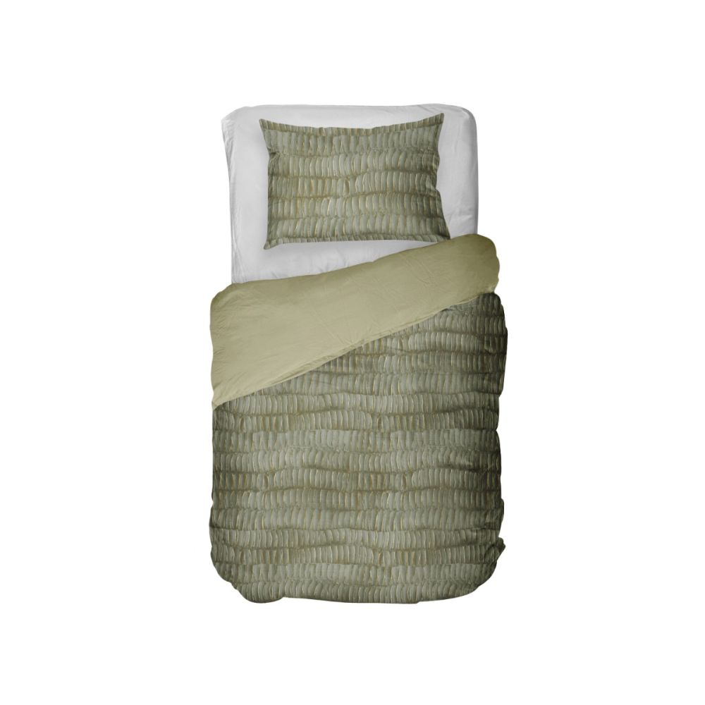 De kleur groen staat bekend om zijn ontspannende werking, doordat het gemakkelijk geassocieerd wordt met de natuur. Het olijfgroene Kayori Mina dekbedovertrek is dan ook een echte must-have. Aan de voorzijde is een prachtige grafische print zichtbaar die door de verschillende vormen een speelse touch krijgt.