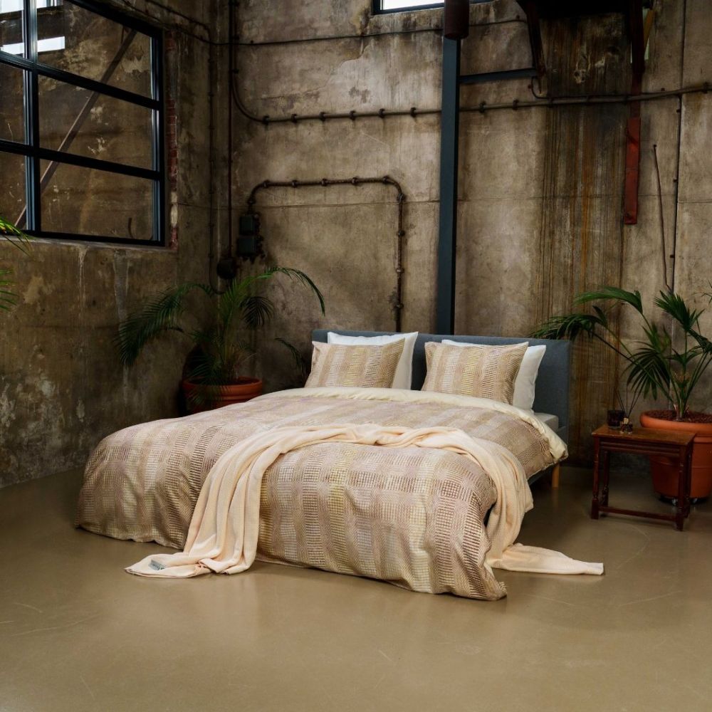 Houd jij wel van een stijlvolle slaapkamer? Dan is het Kayori Nezu dekbedovertrek een goede keuze. Dit prachtige dessin bevat een zandkleurig grafisch patroon en heeft een effen achterzijde. De zachte kleuren geven je interieur een heerlijk rustige uitstraling. Ook passen ze perfect bij vrijwel iedere woonstijl. Voor de finishing touch loopt de print door op de bijbehorende kussenslopen.