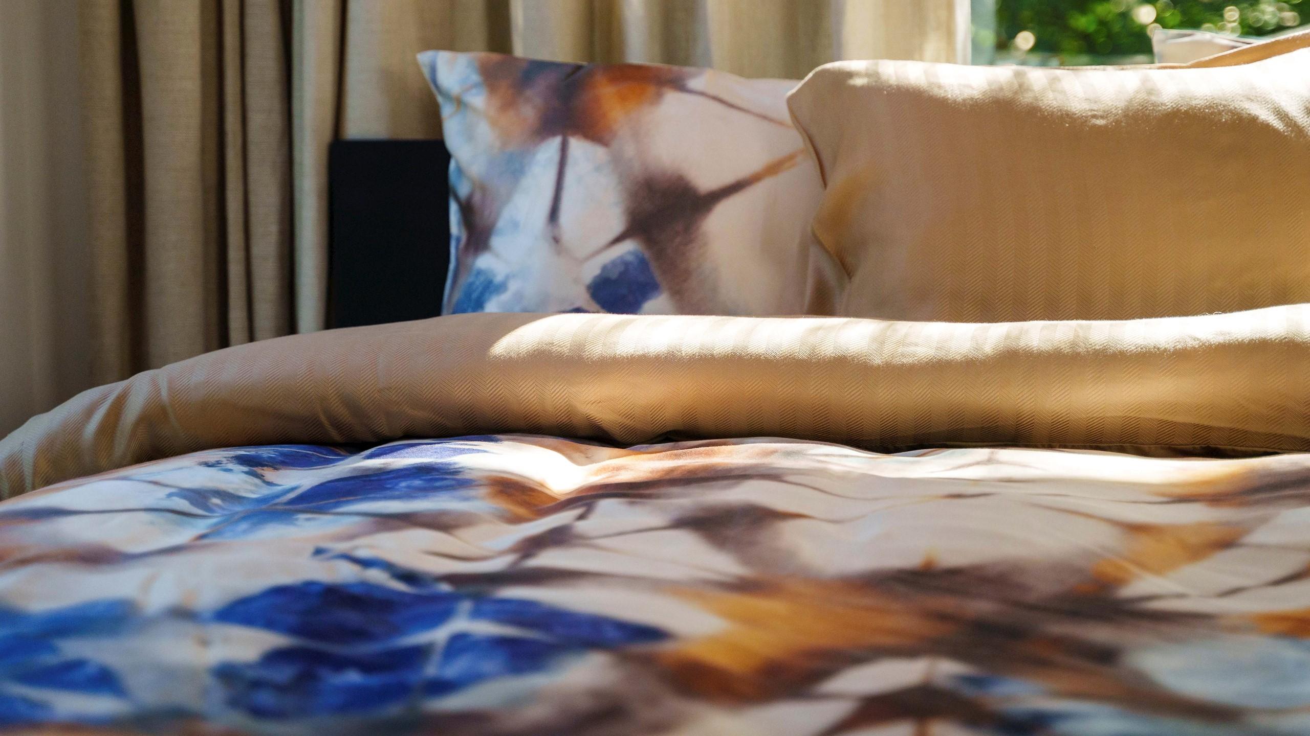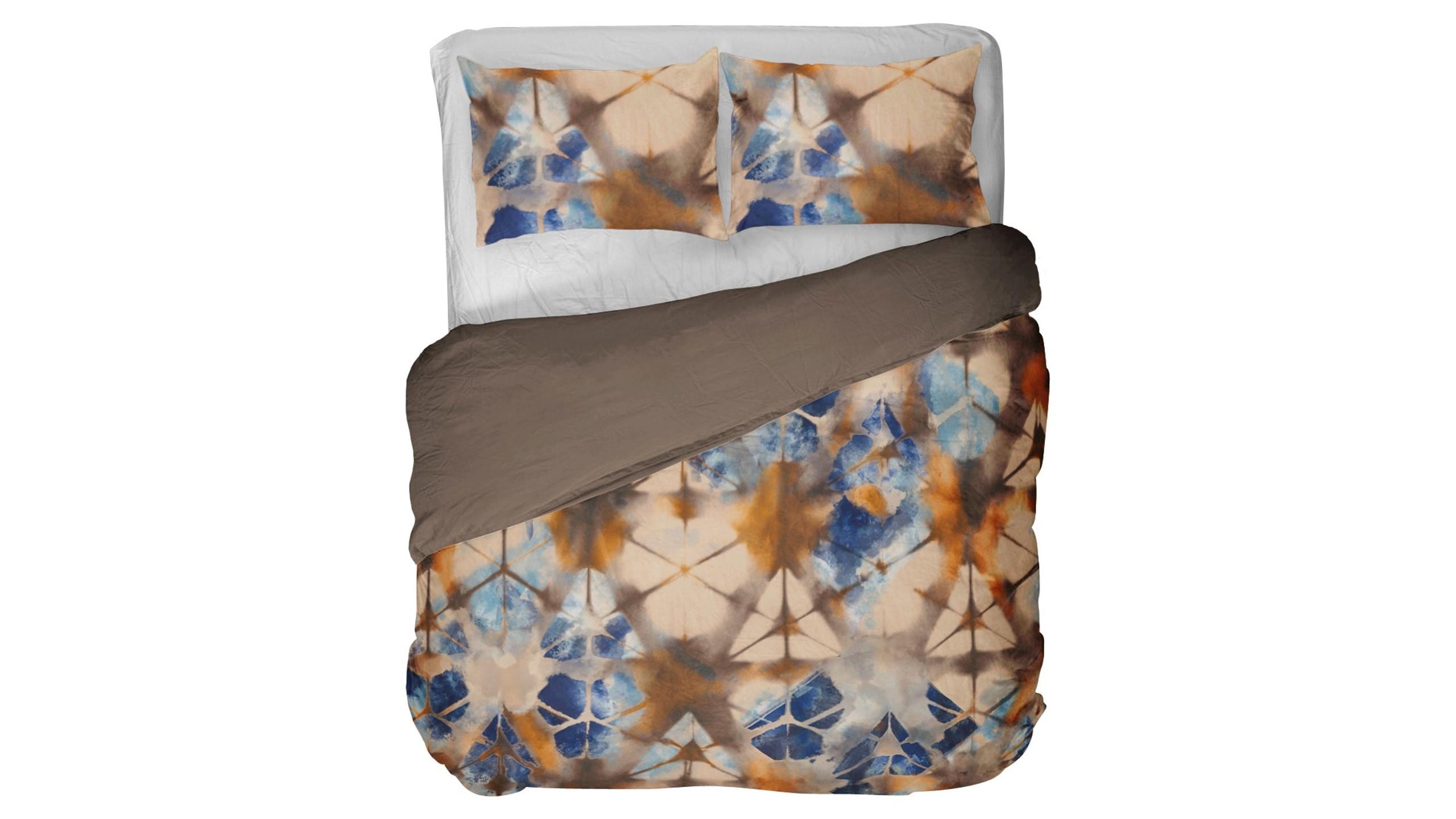 Ojiya is een opvallend dekbedovertrek met een unieke print dat doet denken aan een mandala. In het overtrek wordt op een speelse manier gebruik gemaakt van prachtige kleuren blauw in combinatie met bruine en beige tinten. Een echte eyecatcher in de slaapkamer.