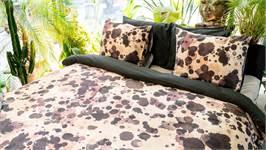 Nihon is een artistiek, spetterend dessin. Op een beige ondergrond zijn willekeurige verfspetters aangebracht in bruin en rood tinten. Een echt kunstwerkje! De achterzijde van dit dekbedovertrek is effen donkerbruin. Dekbedovertrek Nihon is gemaakt van 100% schone biologische katoen satijn: super zacht, luxe glans én comfortabel door het ademende karakter van katoen.