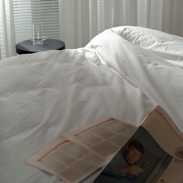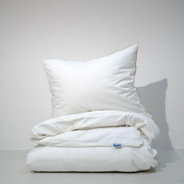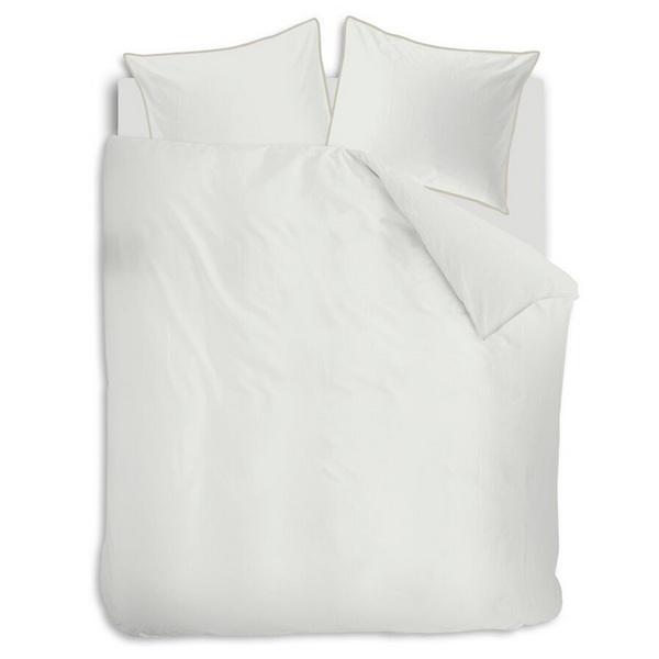 Dit zacht witte overtrek met Sand beige stiksel rondom de kussensloop zorgt voor een frisse slaapkamer. Het overtrek wordt gemaakt van 100% biologisch gewassen katoen.