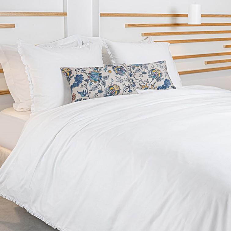 Dommelin Dekbedovertrek Frill Wit is gemaakt van extra hoogwaardig Percale katoen. Percale katoen wordt gemaakt van fijner katoen draad waardoor de stof zachter aanvoelt en toch sterk is. Het dekbedovertrek wordt standaard geleverd met kussensloop/kussenslopen.
