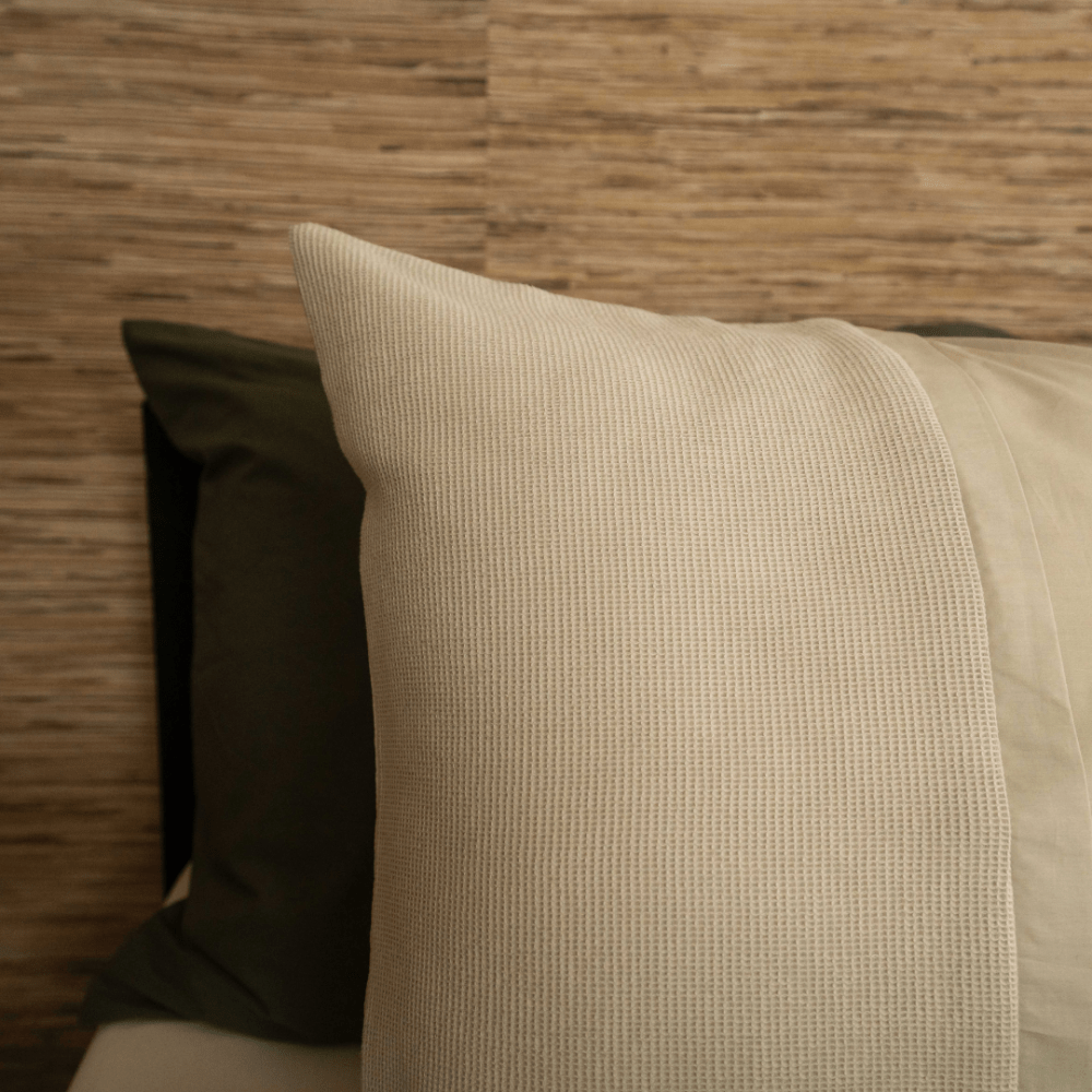 Creëer een rustgevende sfeer in de slaapkamer met het Kayori Erimo dekbedovertrek. Het zandkleurige dessin oogt erg strak en zorgt voor een luxe uitstraling in jouw interieur. Het overtrek is aan het onderste gedeelte voorzien van een wafelstructuur. Hierdoor krijgt het een speelse, maar chique look. De bijbehorende kussenslopen zijn voorzien van dezelfde weefpatronen.