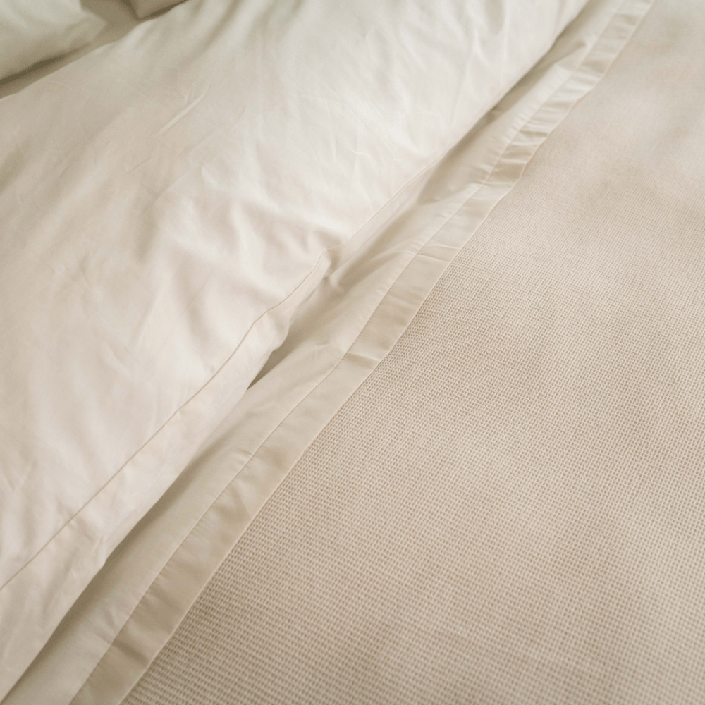 Voor het Kayori Erimo dekbed is gebruik gemaakt van 100% Egyptisch percale katoen. Dankzij de hoge draaddichtheid is de stof erg stevig en voelt het zacht aan. Percale katoen is vochtabsorberend en ademend, zodat je iedere nacht geniet van optimaal slaapcomfort. Aan de onderzijde zit een extra lange, dubbel doorlopende instopstrook.