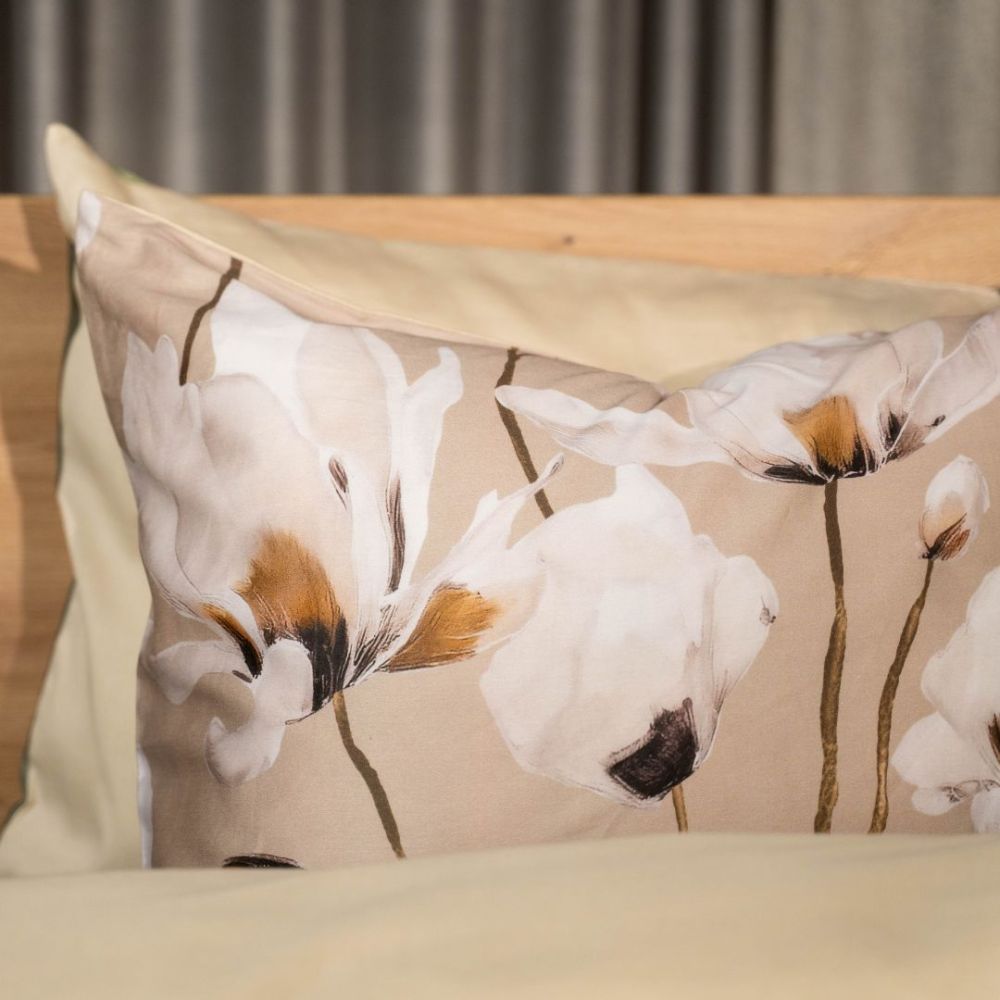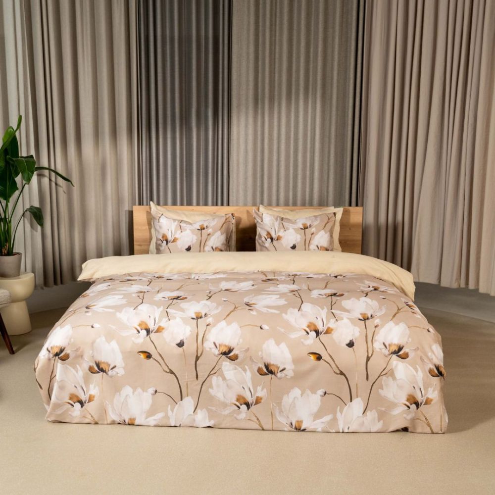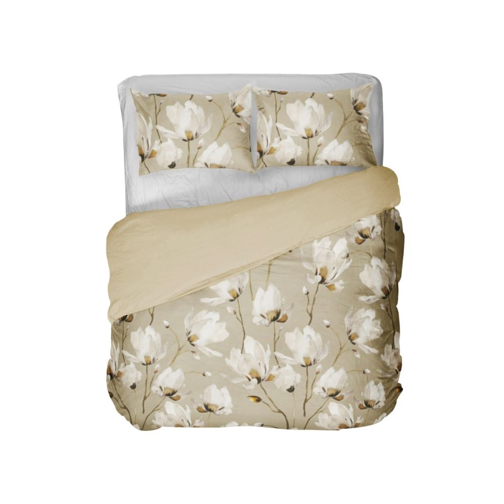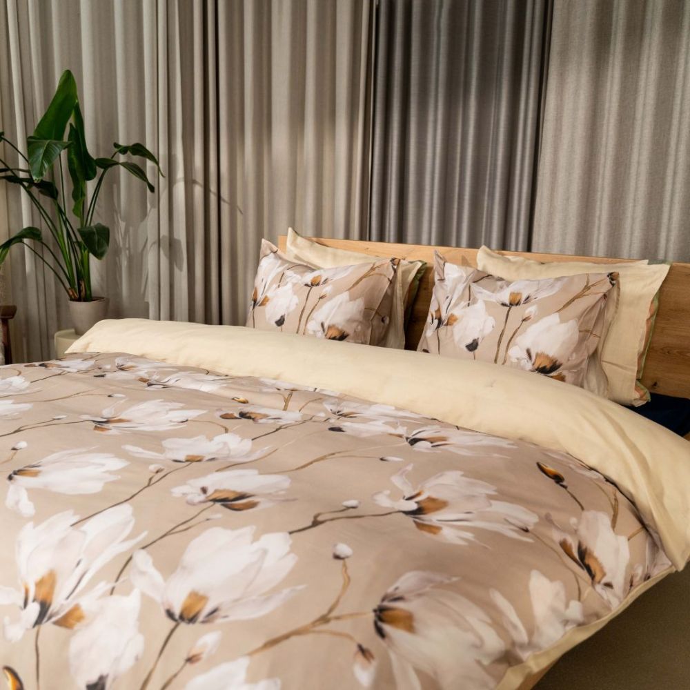 Heb jij een landelijke slaapkamer en ben je nog op zoek naar een passend overtrek? Dan is het Mano dekbedovertrek echt iets voor jou. Op het zandkleurige dessin staat een sierlijk print van witte bloemen. De aardetinten laten het geheel erg rustgevend ogen en de bloemetjes zorgen voor een romantische toevoeging. De achterzijde is effen van kleur, zodat je een luxe omslag kunt creëren of eenvoudig kunt afwisselen tussen beide prints.