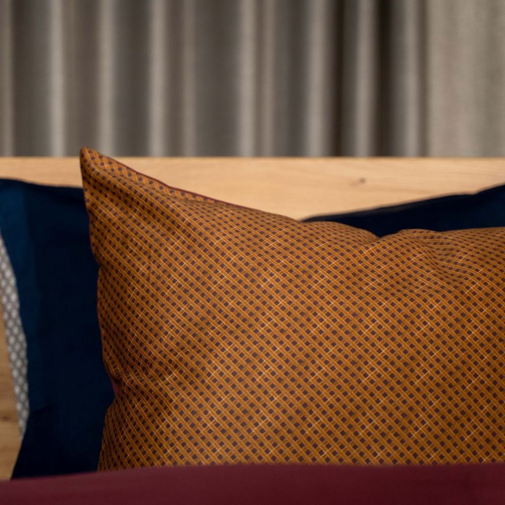 Met het Kayori Miyo dekbedovertrek leg je een echte eyecatcher op bed. Het dessin bevat een gouden geometrische print die prachtig uitkomt op de paarse ondergrond. Het geheel is speels en chique en geeft jouw interieur een boost. De achterzijde heeft een mooie paarse tint, zodat je een omslag kunt creëren. De bijbehorende kussenslopen bevatten beide prints, zodat je leuk kunt combineren.