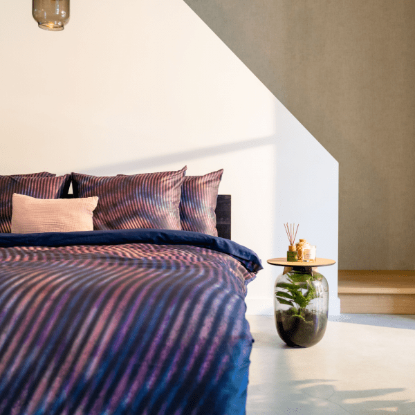 Dekbedovertrek Utano is een bijzonder dessin met een futuristisch tintje. Dit overtrek combineert twee lijnenspellen met elkaar waardoor een dessin ontstaat dat in beweging lijkt