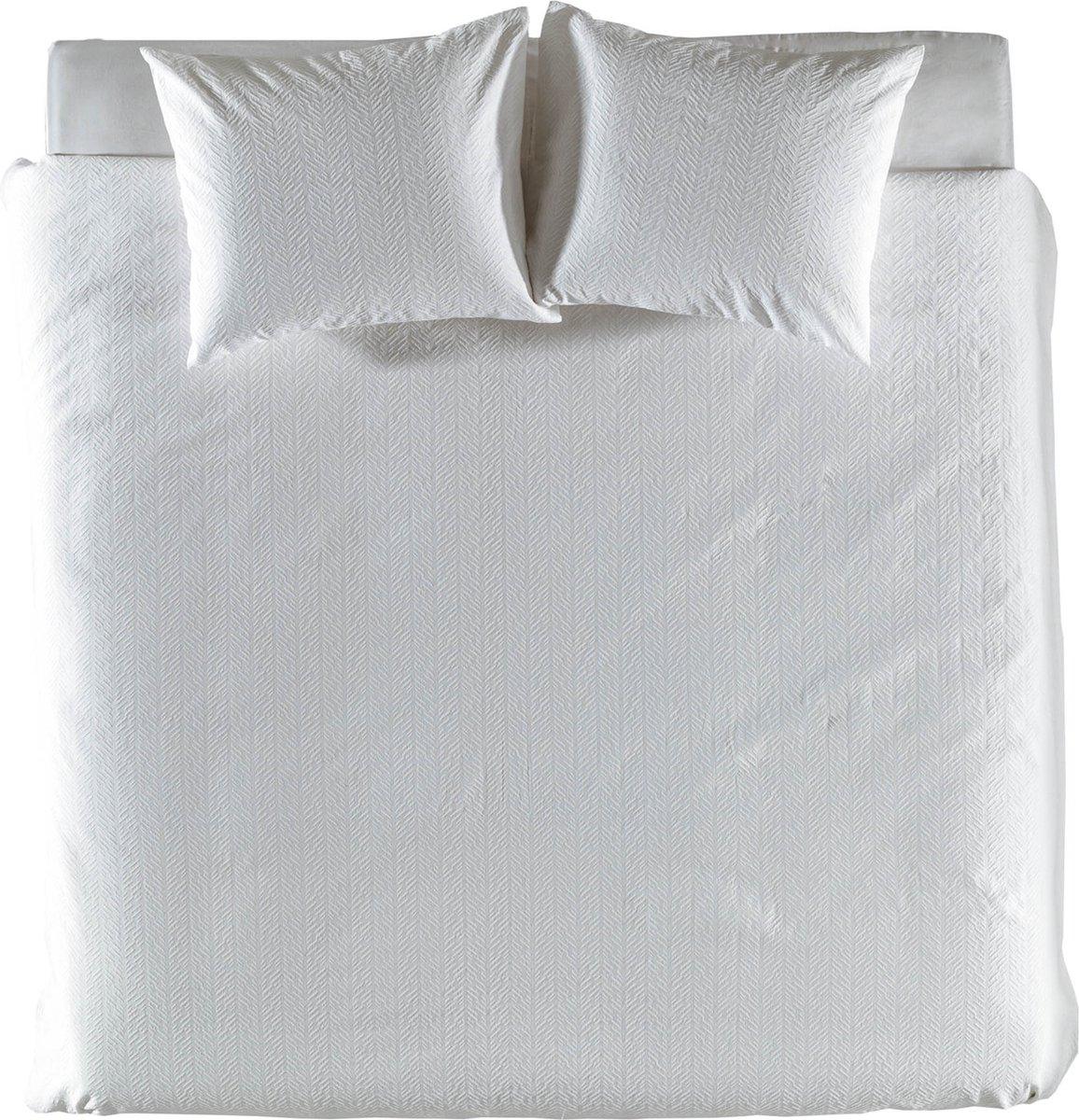 Edith dekbedovertrek van het luxe designermerk Yellow is tijdloos en chique in de kleur wit. Met het pachtige geweven patroon zorgt het voor een rustgevende