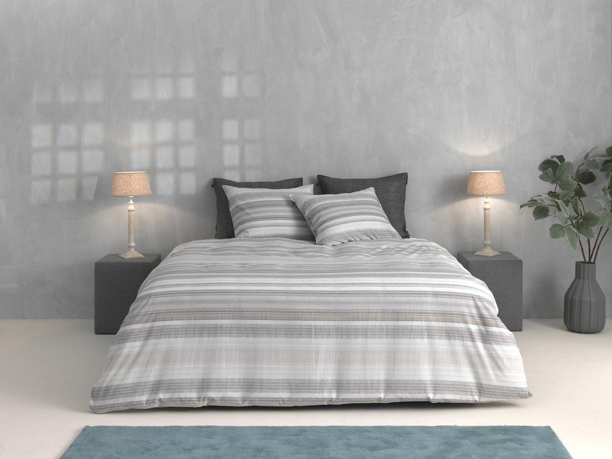 Luxueus dekbedovertrek met strepenmotief is de Paolina Taupe van het trendy merk ZoHome! Een compleet ZoHome 2-persoons dekbedovertrek 240×220 met 2 kussenslopen en voorzien van