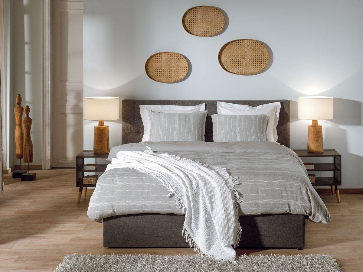 Haal een luxe hotelgevoel naar je slaapkamer met het dekbedovertrek Dominique van het merk Yellow. De kleur Melange Grey kan perfect gecombineerd worden met ieder