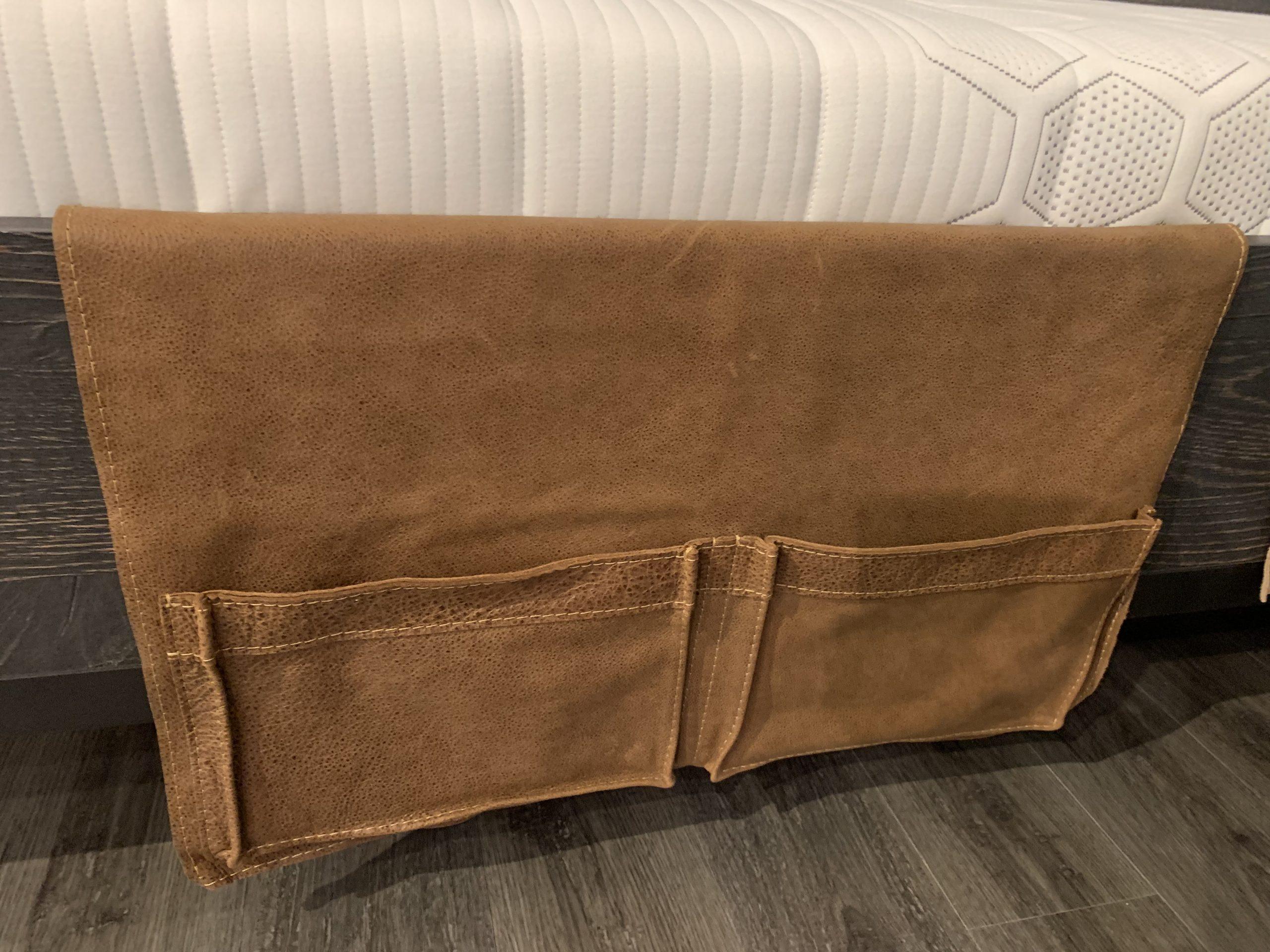 Leren opbergzak voor aan het bed