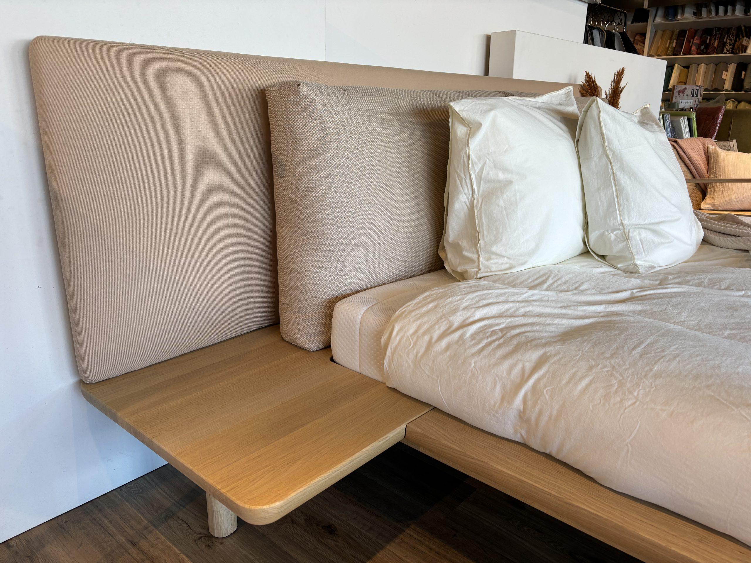 Het Showroommodel is in de kleur Solid Oak , met de meest luxe stofgroep E en vlakke spiralen . Natuurlijk kunt u ook de Auping matrassen kiezen , neem daarvoor contact op met De Bedden op tel nummer 0223624093.